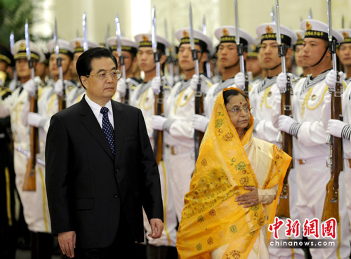 5月27日,中国国家主席胡锦涛在北京人民大会堂举行仪式,欢迎印度总统帕蒂尔访华。中新社发 廖攀 摄