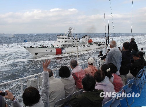 中国“海巡21”轮已出色完成东京湾“检阅式及综合训练”联合演习。作为唯一一艘应邀外国船艇——“海巡21”轮,5月29日以其出色的表现赢得了2000多名日本观摩民众的掌声和欢呼。中新社发 周正宝 摄
