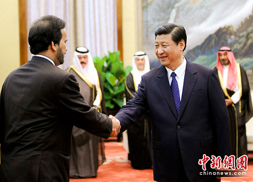 6月4日,中国国家副主席习近平在北京人民大会堂会见了科威特副首相兼外交大臣穆罕默德等出席中国—海湾合作委员会首轮战略对话的与会政要。中新社发 廖攀 摄