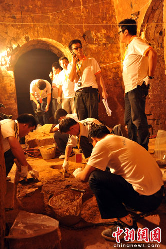 6月12日,河南安阳曹操高陵直播发掘现场,继2号墓被发现后,曹操墓的1、2号墓又发掘出铁剑等新的珍贵文物。中新社发 王中举 摄