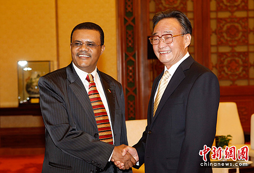 图:吴邦国会见埃塞俄比亚联邦院议长德格菲