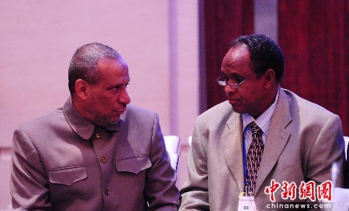 6月22日上午,中国阿拉伯文化论坛在北京举行,一位身着“中山装”的阿拉伯国家嘉宾与身着西服的嘉宾在会场交流。中新社发 侯宇 摄