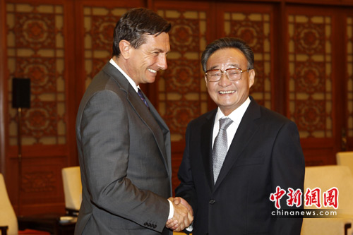6月23日,中国全国人大常委会委员长吴邦国在北京人民大会堂会见了斯洛文尼亚总理帕霍尔。 中新社发 盛佳鹏 摄