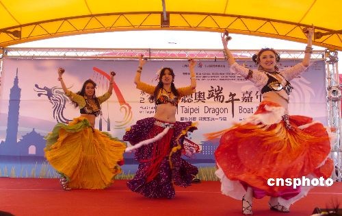 五月二十八日,台北大佳河滨公园举行端午嘉年华活动。图为舞台上的肚皮舞表演。中新社发 邓敏 摄