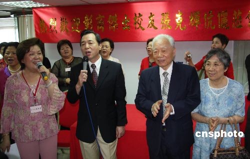 5月29日,前全国政协副主席张克辉来到位于台北市西宁北路的“彰商校友会馆”与昔日同窗聚会。中新社发 耿军 摄