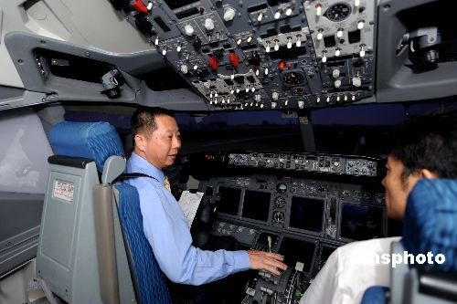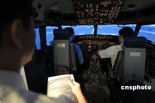 6月1日,来自台湾的9名飞行员参加深圳航空公司招聘面试以及模拟飞行考试,这是深航与台湾FQC公司于2009年4月签署《台湾飞行员服务委托协议》后,FQC公司为深航甄选的首批9名飞行员,深航计划共引进25名台湾飞行员。中新社发 陈文 摄