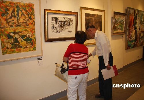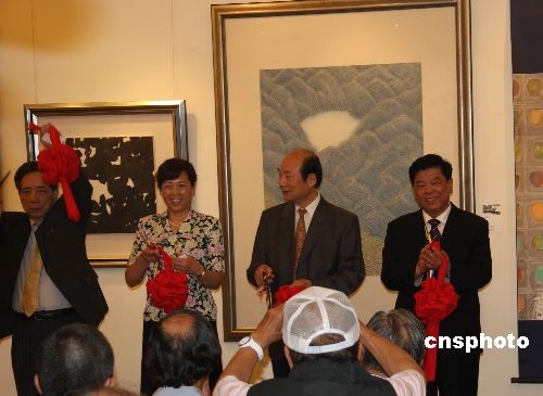 6月13日,中国文学艺术界联合会与台湾文艺协会联合举办的《世纪初艺术——海峡两岸绘画联展》,在台北美术界地位最尊贵的“国父纪念馆”中山画廊北室开幕,画展精选60位两岸顶尖艺术家的作品。中新社发 耿军 摄