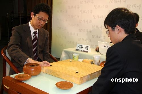 6月21日,由海峰棋院主办的第二届台日精英职业围棋赛在台北落幕,日本选手河野临九段获得冠军及75万元新台币奖金。图为河野临(左)与台湾职业棋手陈诗渊八段在决赛中,陈中盘投子认负获亚军及30万元新台币奖金。中新社发 董会峰 摄