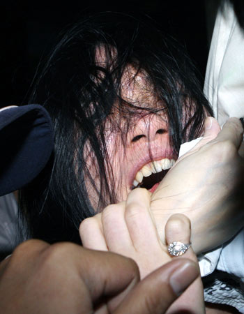 陈水扁女儿陈幸妤22日因涉嫌洗钱案遭检方侦办伪证罪首度出庭,护卫队与采访媒体推挤爆发冲突。(图:“中央社”)