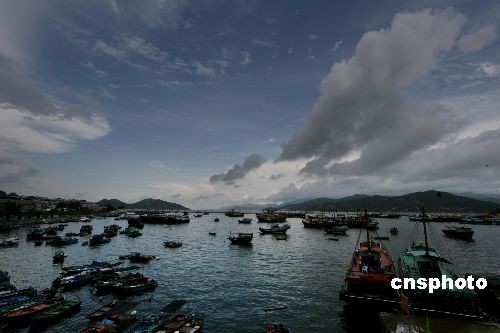 六月二十四日上午,阵雨来临之前香港离岛长洲风云骤涌,一派好风光。长洲是香港著名的渔港,近来观光旅游业在海岛社会经济中异军突起。中新社发 郑祚声 摄