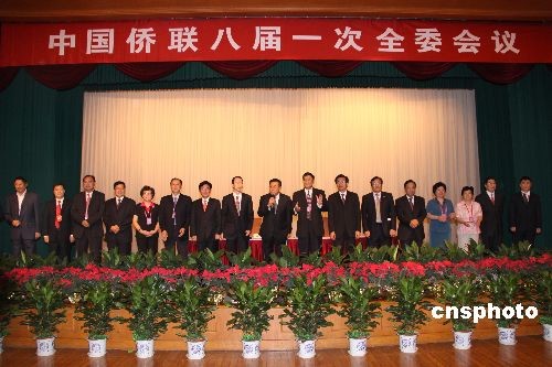 七月十七日,中国侨联八届一次全委会在北京友谊宾馆选举产生新一届领导班子。主席为林军,副主席为王永乐、王成云、王荣宝(女)、朱奕龙、乔为、李卓彬、李昭玲(女)、李祖沛、李欲唏、吴幼英(女)、何小平、张小健、张云龙、张玉卓、陈有庆、雪克来提·扎克尔、梁国扬和董中原,秘书长为乔为(兼)。图为中国侨联新一届领导班子集体亮相。中新社发 史利 摄