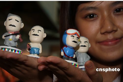 7月19日,“2009海峡两岸大学博览会”在台北、高雄同步举行。台湾中山大学在高雄展区推出该校学生设计的Q版孙中山先生公仔,造型生动、可爱,吸引众多学生问津。该博览会由中时集团主办,因台湾教育主管部门临时“喊卡”,大陆高校无缘参与。中新社发 董会峰 摄
