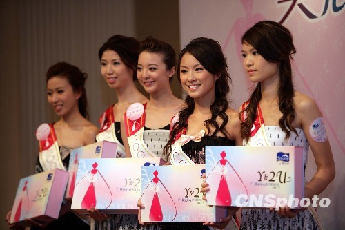 八月八日,参加2009香港小姐竞选的五位候选佳丽亮相记者会,让大众分享她们对美丽与智慧的独特见解。2009年度香港小姐竞选决赛将在八月二十二日举行,连日来,候选佳丽马不停蹄出席各项宣传活动,为决赛做准备。中新社发 洪少葵 摄