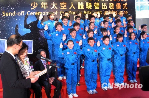 八月八日,三十名青少年在香港太空馆参加“少年航天员体验营”出发仪式后,启程前往北京,展开为期七天的体验营航天员训练。民政事务局局长曾德成、中联办文体部副部长周珊珊等嘉宾主持出发仪式。该活动由康文署与国家航天员科研训练中心合办,是航天员科研训练中心首次为香港青少年学生举办的训练活动,旨在让青年学生加深学习和体验中国航天员的训练过程、认识中国在航天科技上取得的重大成就。中新社发 洪少葵 摄