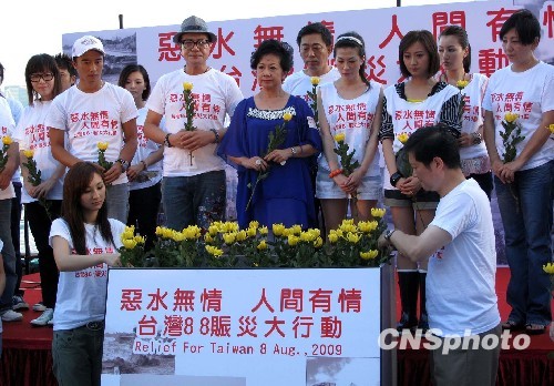八月十五日,香港多个团体发起为台湾受风灾影响的民众赈灾募捐活动。其中在尖沙咀星光大道发起的五小时的义唱筹款活动,有众多演艺界明星艺人出席。中华旅行社表示,至今已收到约一千万港元的捐款。中新社发 洪少葵 摄