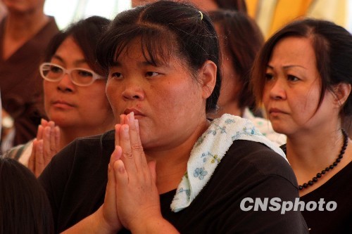 8月22日,重创台湾中南部的“88水灾”进入第14天,重灾区纷纷举办“二七”超度法会。图为高雄县六龟乡新开村超度法会上,罹难者家属双手合十,祈福追思被泥石流掩埋的亲人。中新社发 董会峰 摄