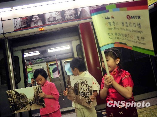 八月二十四日,香港铁路“心系香江—重温往日情”举行揭幕仪式。为使现代人重温湾仔区旧时景象,港铁向公众征集怀旧老照片,并挑选一百张由香港居民、摄影爱好者及历史悠久机构提供的湾仔区旧照,于湾仔区地铁站月台顶上首次展示。中新社发 谭达明 摄