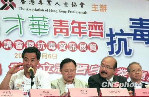 九月六日,香港举办《专业展才华·青年齐抗毒》-大型演讲会暨抗毒资讯展览,活动透过公开讲座向年青人宣扬要远离毒品。图为香港专业人士协会首席会长梁振英在现场回答学生及家长提出的问题。中新社发 张勤 摄