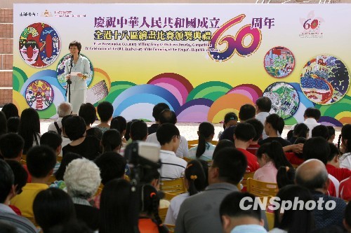 随着国庆六十周年临近,香港喜庆气氛日益浓郁。九月十九日,在香港中、小学学生中反响热烈的《祖国-生日快乐》主题绘画比赛己评定名次,并于当日在九龙公园举行颁奖礼。中新社发 郑祚声 摄