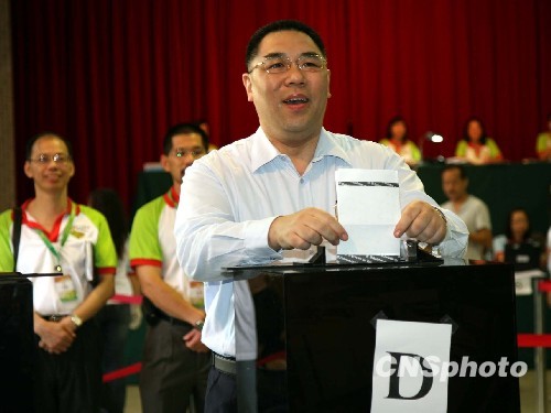 9月20日下午,澳门特区候任行政长官崔世安到慈幼中学投票站投票。当日,“澳门特别行政区第四届立法会选举”在澳门全面展开,全澳门选民通过一人一票方式选出新一届立法会中的12名直选议员。中新社发 洪少葵 摄
