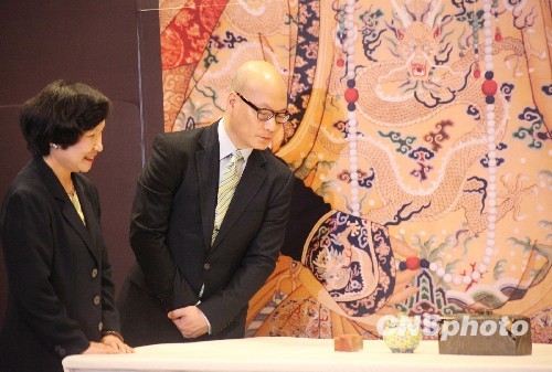 10月2日,来自北京故宫博物院的3件清代雍正朝稀世文物——“为君难”寿山石螭钮方印、铜胎画珐琅缠枝莲纹六孔瓶、描金彩漆包袱式纹长方盒在台北故宫博物院举行开箱仪式。两岸故宫文物六十年来首度聚首,并将于10月7日登场的“雍正——清世宗文物大展”上与海内外参观者见面。是次,北京故宫博物院精选37件清代雍正朝文物远渡海峡,包括雍正肖像、生活绘画与器物等。对此,台北故宫博物院院长周功鑫期盼今后海峡两岸的文化交流能有更大的进步。中新社发 李佳佳 摄