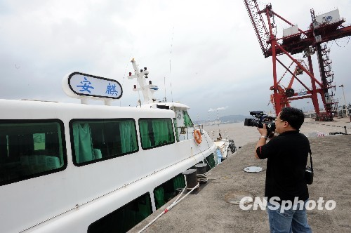 10月5日,担负“两马”(马尾至马祖)航线客运任务的安麒轮停泊在福州马尾港客运码头避风。当日,记者从福州边检站了解到,受今年第17号台风“芭玛”影响,“两马”(马尾至马祖)航线从10月3日中午开始停航至今。中新社发 刘可耕 摄