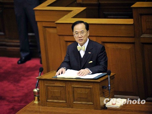 十月十四日,香港特区行政长官曾荫权在立法会发表二零零九至二零一零年施政报告。中新社发 谭达明 摄