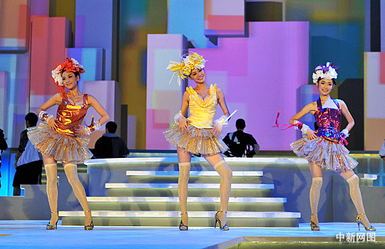 10月31日晚,“2009中华小姐环球大赛”总决赛上,12名入围总决赛的佳丽身着迷你裙大秀性感爵士舞。中新网记者 金硕 摄