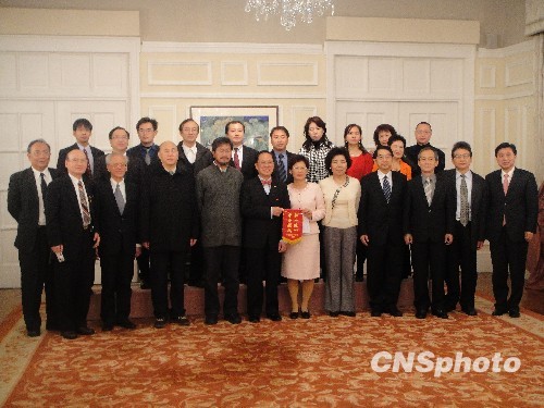 十一月十六日至十九日,由主席纪欣率领的台湾中国统一联盟“一国两制”参访团一行二十人赴香港访问。香港特区政府行政长官曾荫权、香港中联办副主任黎桂康和特区政府政制及内地事务局局长林瑞麟分别会见参访团,并介绍有关情况。图为曾荫权(前排左六)会见参访团一行。中新社发 钟新 摄