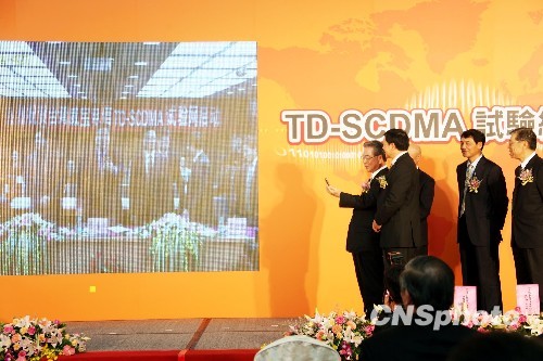 11月24日,台湾威宝电信“TD-SCDMA试验网”在台北正式开通。图为台湾金仁宝集团董事长许胜雄在众人见证下与在北京现场的中国移动通信集团副董事长张春江,就合作推动TD产业发展等话题,进行了两岸间第一个TD视频通话。中新社发 黄少华 摄