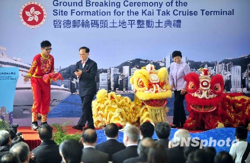 十二月二十三日,香港举行启德邮轮码头土地平整动土典礼。特首曾荫权表示,新邮轮码头正式动工,标志着香港邮轮旅游的发展踏出重要一步。中新社发 谭达明 摄
