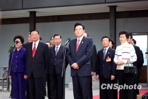 12月25日,大陆海协会会长陈云林一行结束在台湾的行程,自台中搭机返京。图为海基会在涵碧楼举行仪式,欢送陈云林一行,陈云林和海基会董事长江丙坤话别。中新社发 陈立宇 摄