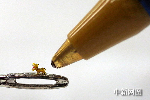 2010年已开年,人们也很快将告别农历“牛”年,进入“虎”年,台湾著名微雕家陈逢显特地创作雕刻了一只芥子粒大的老虎,期望借大吼一声的虎威,为台湾驱邪振正。小老虎长1点2毫米、宽零点六毫米、高1毫米。面积只约为一般米粒的十分之一。