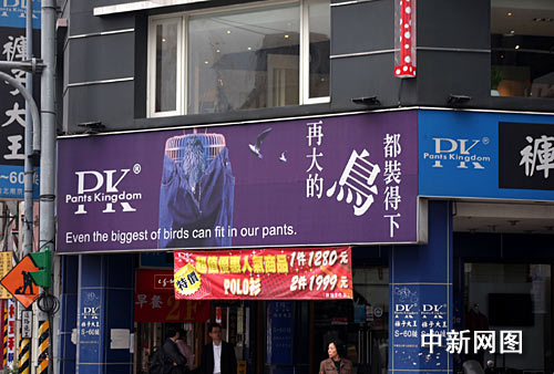 台北有个裤子大王,再肥胖的裤子也有得做,店招就更是生猛酷呆。图为位于南京东路的裤子大王店和店招。陈立宇摄