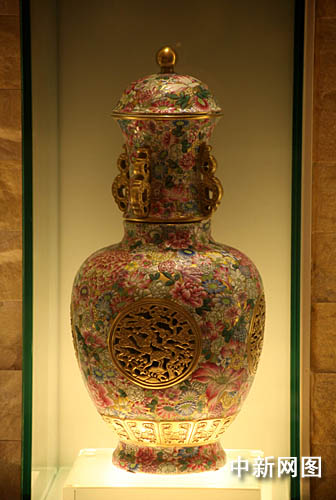 图:垦丁夏都酒店展出乾隆款洋彩金地百花转心瓶