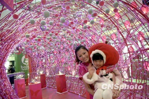 1月21日,香港商家为迎接农历新年和情人节,特以“香苹·恋蝶·贺丰年”为主题,设置营造贵气闪烁的富足苹果园,苹果许愿树及玫瑰苹果园,祝福新一年吉祥如意、富足丰收。中新社发 张勤 摄