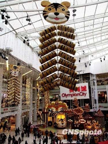 虎年将至,香港一商家大手笔布置商厦,迎新年气氛越来越浓。中新社发 张勤 摄