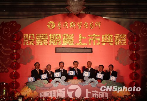 1月25日,台湾期货交易所举行“股票期货上市典礼”。“金管会”主委陈冲(中)出席典礼。中新社发 陈立宇 摄