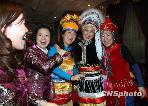 虎年中国春节期间,法国华人社会的活动丰富多采,有彩装游行、各种迎春会、中国“四海同春”艺术团演出等等。图为法国华侨华人妇女联合会的会员们在为大年初一的春节彩装游行排练。中新社发 吴卫中 摄