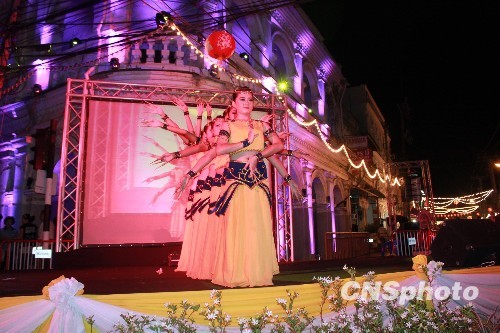 泰国普吉岛20日举办为期三天的大型活动庆祝中国春节。普吉中学孔子课堂应邀参加了本次庆祝活动,包括举办中华饮食、中国文化工艺品、以及汉语教材为内容的展览。图为庆祝活动中当地学生表演的千手观音舞蹈。中新社发 顾时宏 摄
