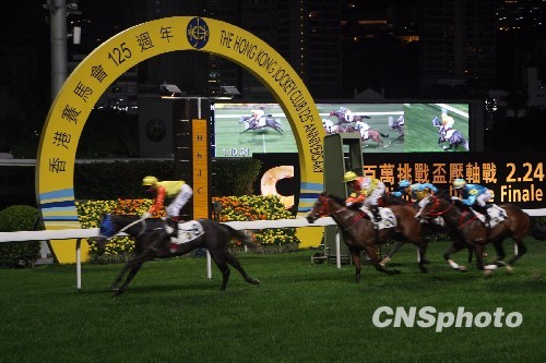 2月24日晚,“百万挑战杯”压轴战赛马在香港跑马地马场开锣。在可容纳35000位观众的赛场里座无虚席。中新社发 郑祚声 摄