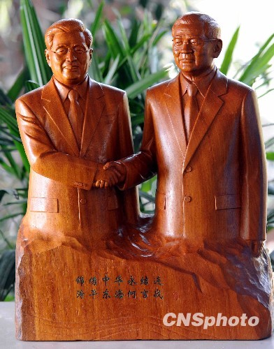 3月5日,由福建省工艺美术名艺人陈文远创作的木雕作品《胡连会》亮相海峡两岸迎春木雕精品展。正在福州举办的海峡两岸迎春木雕精品展,共展出海峡两岸木雕艺术大师木雕精品200件,吸引众多观众驻足欣赏。中新社发 刘可耕 摄