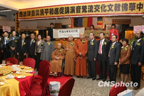3月18日,“中华终南山佛教文化交流演讲”及“促进和平、消灾吉祥佛事梵音表相圣会”假香港沙田举行,香港菩提学会会长永惺长老、终南山佛教文化院院长中言大师、香港佛教僧伽联合会会长绍根长老、中华佛教文化院名誉会长杨孙西先生等嘉宾主礼并出席。终南山位于内地陕西省秦岭地区,佛寺林立、高僧辈出、义学发达,是中华佛教的发源地之一。今次终南山近50名高僧大德及居士应邀于3月16日至19日来香港交流访问。 中新社发 郑祚声 摄