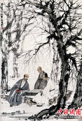 香港苏富比举行的中国书画拍卖会6日圆满结束,总成交额高达4亿1,821万港元/5,362万美元。更创出香港苏富比历年来中国书画拍卖之最高总成交额。当中,六帧画作之成交价突破千万港元,傅抱石之《对奕图》更以高估价五倍之3,874万港元成交(估价700万港元)。中新社发 洪少葵 摄