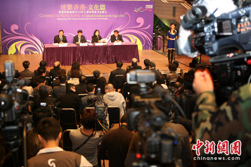 4月8日下午,“连击香港.文化篇----香港参加2010年上海世博会”记者会,在文化中心举行。据悉,世博会期间,香港表演团体将在上海音乐厅、大剧院、东方艺朮中心等场所呈献20个突显香港特色的舞蹈、粤剧、中西乐、多媒体演出等丰富多采的演艺节目。中新社发 郑祚声 摄