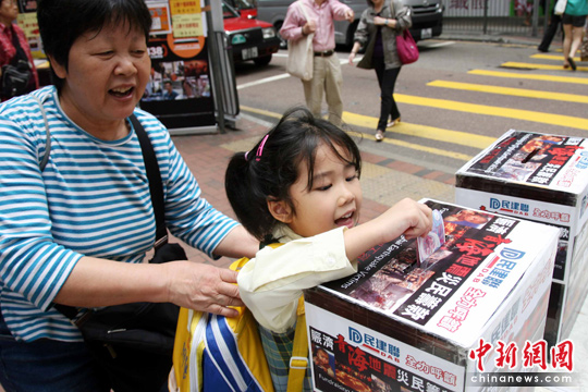 4月21日,不少市民在街头为玉树地震灾区踊跃募捐。当天,香港特区政府机构和景点下半旗致哀,配合全国举行的哀悼活动,悼念青海7.1级地震死难者。中新社发 洪少葵 摄