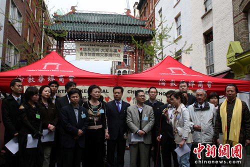 当地时间25日,英国华人华侨社团在伦敦华埠举行“情系玉树,大爱无疆”为青海地震灾区赈灾募捐活动,现场共筹集善款近2万英镑。中新社发 魏群 摄