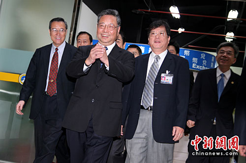 5月5日,中共福建省委副书记、省长黄小晶搭乘厦航8009加班机抵达台北松山机场,展开为期6天的参访、交流。黄小晶此行主要为“走亲访友做生意”——看望老朋友,增进新了解,探讨新合作。图为黄小晶步入松山机场第二航厦入境大堂,拱手向欢迎人群及记者致意。中新社发 董会峰 摄