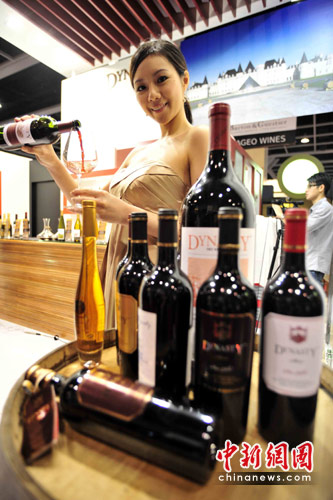 亚洲最大型的葡萄酒及烈酒展览25日在香港开锣。当天,香港财政司司长曾俊华在开幕礼上表示,预计从2009年至2013年,中国红酒市场将扩大六成,打入香港市场对红酒商进军内地非常有利。中新社发 谭达明 摄