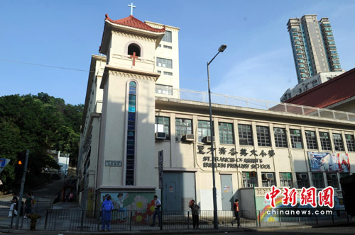 香港一名43岁男子日前发现手足口病症,随后其7岁儿子也出现类似症状,这名学童就读的圣方济各英文小学(如图),5月28日起停课两星期。另外,香港圣公会西门良景幼儿学校也因一名3岁学童出现手足口病例,5月28日起停课两星期。香港卫生防护中心总监曾浩辉在当日傍晚举行的记者会上预计,今年手足口病高峰将持续至7月,个案数字可能会增多。中新社发 郑祚声 摄